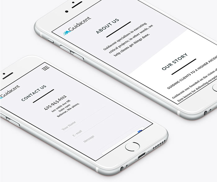 We were approached by Guidacent, a Pacific Northwest consulting agency with a focus on solution delivery, to refresh its public facing website. Stale with minimal call-to-action and clunky on mobile, their current website was not optimized to attract new clients and new hires. With execution being at the heart of their business model, we worked with key stakeholders to get their digital presence up to par with their standards of high end results.